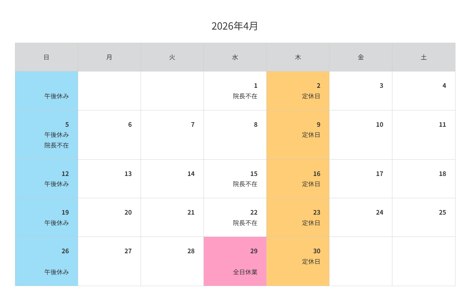 【院長不在日のお知らせ】