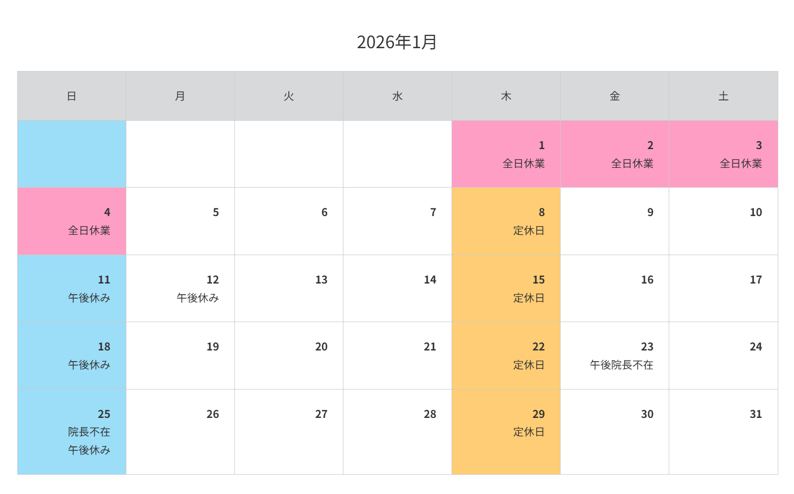 9/3(水)、9/10(水)、9/20(水)は院長不在です。